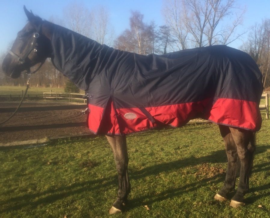 600 Denier Turnout Rug 350gsm Combo Neck Navy/Red 5’6 – 6’9